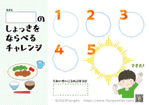 そこでFlorigenでは、そんな子どもに食器の配置を意識してもらうためのチャレンジシートを制作しました。