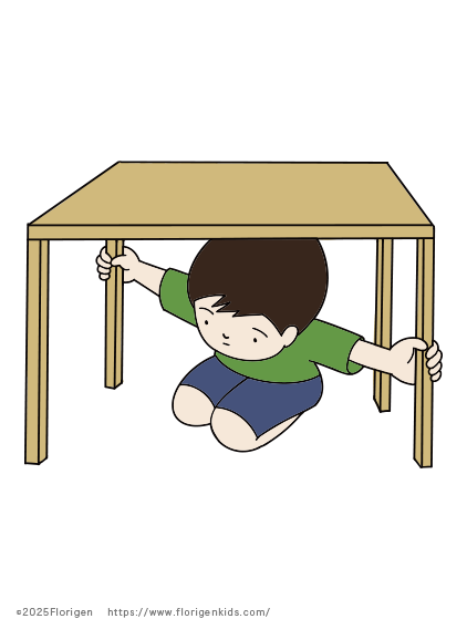 防災イラスト *商用利用の方は、利用規約をご覧ください。 ダウンロード一覧 頭を守る ダンゴムシのように丸くなって頭を手で抑える男の子 机の下に隠れる 机の下に隠れ、サルのようなポーズで机の脚を両手でつかむ男の子 口をハンカチで覆う アライグマのようにハンカチで口元を覆いながら立つ男の子 口をハンカチで覆う2 アライグマのようにハンカチで口元を覆いながら歩く男の子 口をハンカチで覆う3 アライグマのように両手でハンカチを口元にあてて歩く男の子